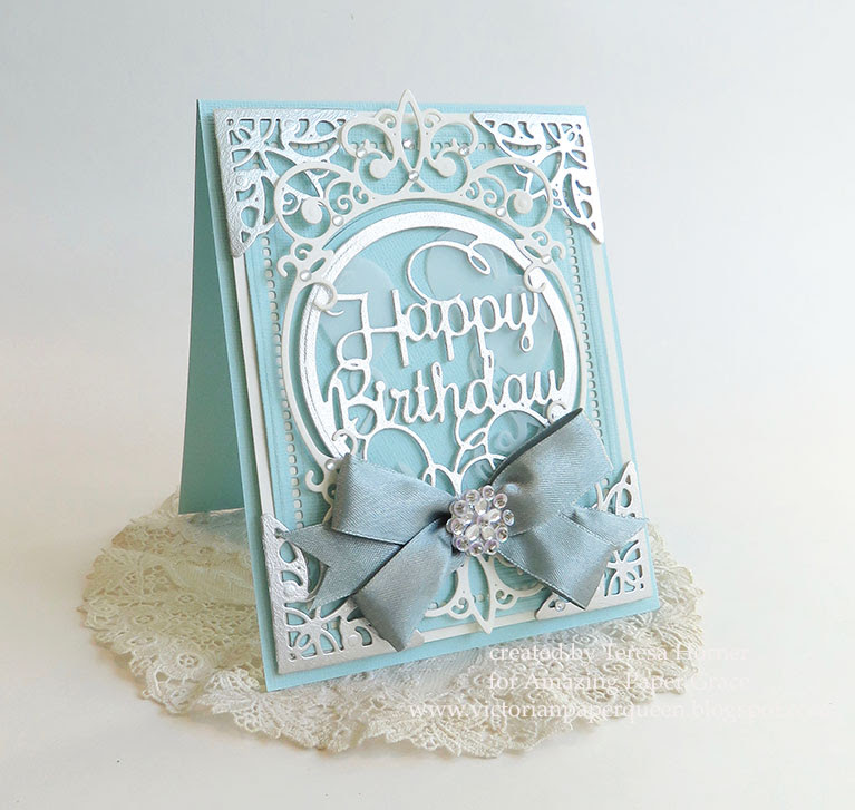 Up for grabs is an Amazing Paper Grace die of your choice from the the Chantilly Lace Collection; there will be a total of six dies and a winner can win once among all six blogs. If your name is selected, simply claim it within 2 weeks of announcement by sending your address through the form under the Contact Tab on the Amazing Paper Grace Blog. The dies will be mailed out from Amazing Paper Grace.